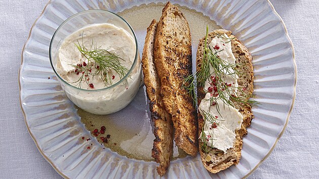 - Dvě snítky kopru nasekáme nadrobno a vmícháme do paštiky. Podle chuti ji osolíme, opepříme a rozdělíme do menších misek nebo skleniček. Necháme odležet v chladu.