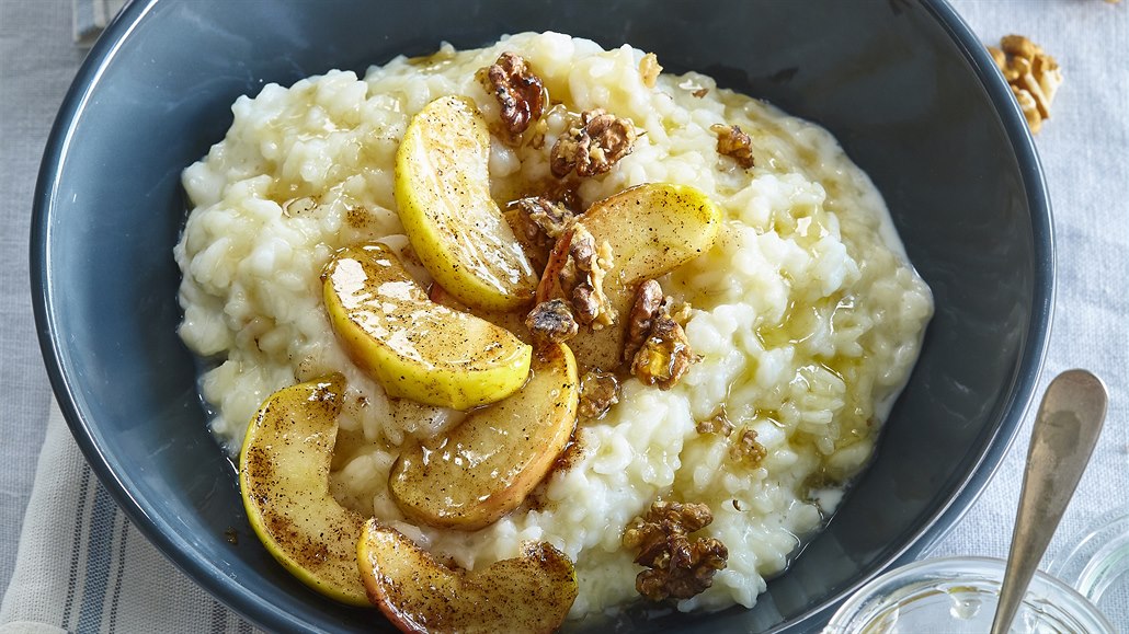 - Hotovou kaši ozdobíme opečenými jablky, posypeme skořicí a ihned podáváme. Můžeme polévat medem a posypat oříšky podle chuti.