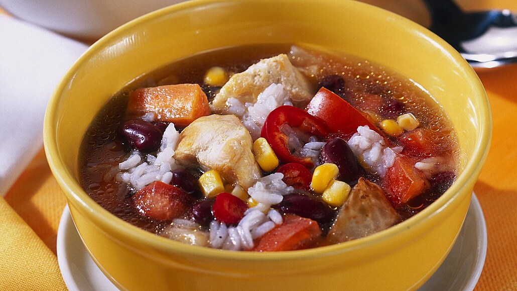 - Rajčata spaříme vařící vodou, oloupeme je a nakrájíme. Chilli papričku zbavíme semen a nadrobno ji nakrájíme. Obojí přidáme do hrnce a zalijeme připraveným vývarem. Vše uvaříme doměkka. Nakonec polévku podle chuti osolíme. Podáváme ji s čerstvým pečivem.