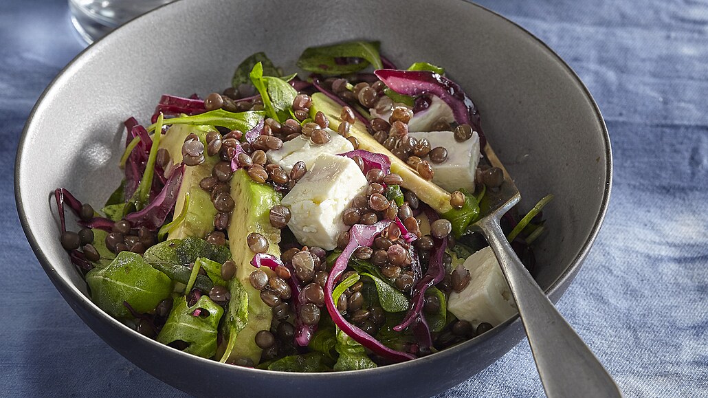 Také tak milujete saláty s luštěninami? Výhodou je, že zasytí a jsou zdrojem spousty užitečných živin. Zkuste tento, který kombinuje výhody čočky beluga, zelí i avokáda.