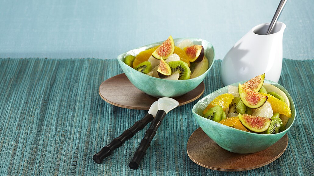 - Pomelo i kiwi oloupeme. Měsíčky pomela zbavíme ještě bílé blanky. Z pomerančů okrájíme kůru i s vnitřní bílou slupkou a pak po obvodu vykrájíme dílky dužiny.