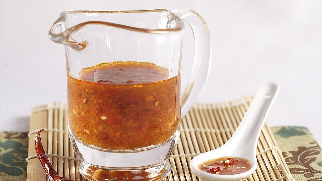 - V misce smícháme nakrájenou papriku, chilli, zázvor a česnek, limetkovou kůru a šťávu, sezam, med, sójovou omáčku, sambal oelek a nasekanou bazalku. Dochucovací omáčku uzavřeme do nádobky s víčkem. V chladničce vydrží až 4 dny.