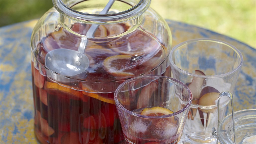 - Vše zalijeme ledově vychlazeným vínem a necháme alespoň 10 minut rozležet. Pak podle toho, jestli chceme mít lehčí nebo silnější nápoj, dolijeme vodou.