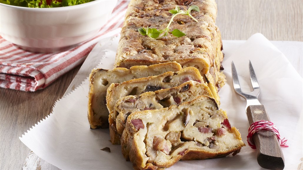 - Formu vymažeme máslem a vysypeme strouhankou. Houbovou hmotu dáme do formy a vložíme do vyhřáté trouby. Pečeme při 180 °C asi 45 minut. Hotovou sekanou nakrájíme na plátky a podáváme se salátem.