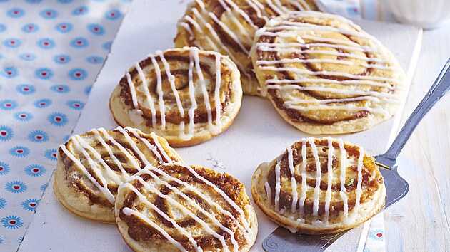 - Lívanečník nahřejeme a potřeme olejem. Nalijeme těsto a sáčkem vytvoříme na povrch spirálu ze skořicové hmoty. Lívance pečeme pozvolna po obou stranách dozlatova.
