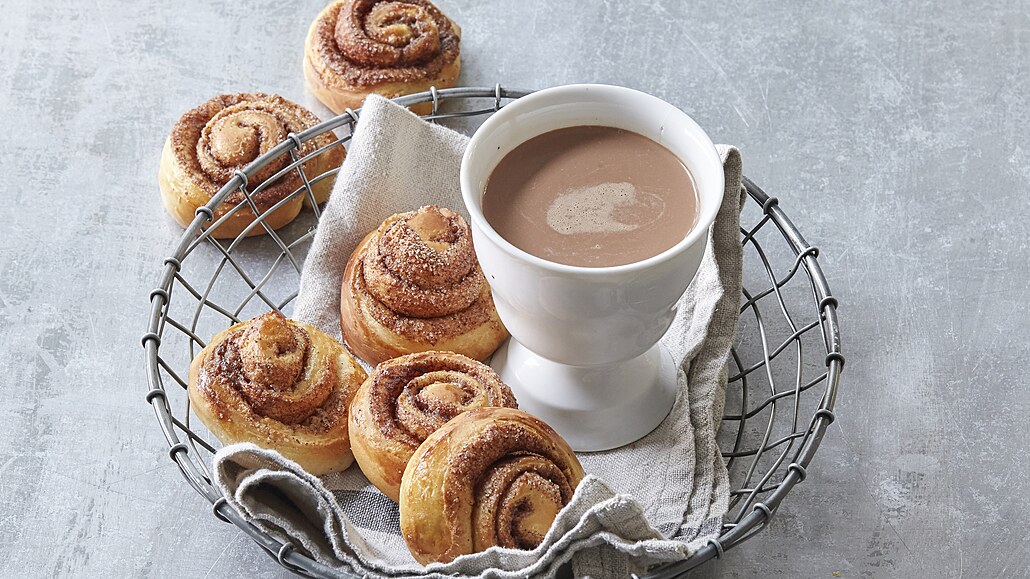 - Těsto poté rozválíme do obdélníku, potřeme rozpuštěným máslem a posypeme cukrem smíchaným se skořicí. Zarolujeme a připravenou roládu nakrájíme na kolečka silná cca 1 cm.