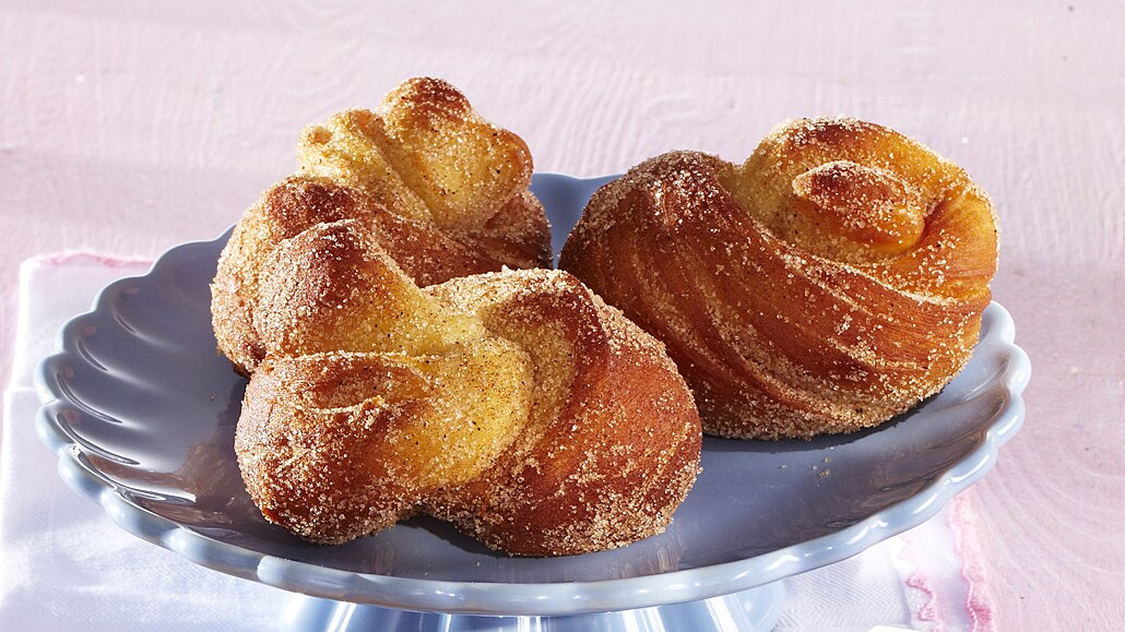 - V pánvi rozehřejeme vyšší vrstvu oleje. Z uzlíků oklepeme zbylou mouku a po částech je v oleji usmažíme dozlatova. Ještě horké je obalíme ve skořicovém cukru.