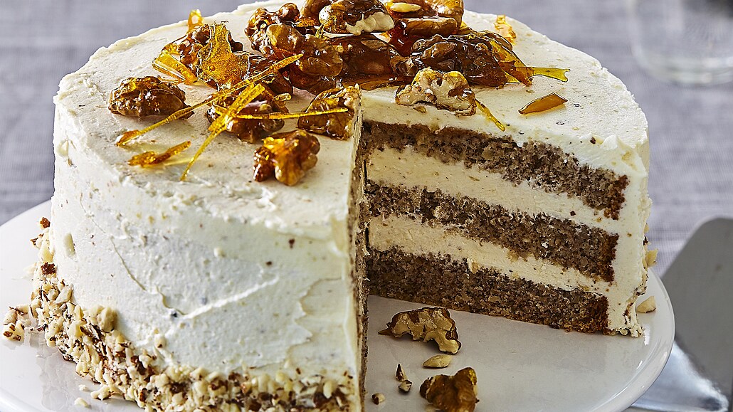 - V pánvi rozpustíme cukr, přidáme med a necháme zkaramelizovat. Pak přisypeme ořechy, které asi 3 minuty vaříme v karamelu a pak je nalijeme na alobal potřený tukem a necháme zatuhnout. Každý díl korpusu pokapeme čajem a potřeme částí krému. Korpusy lepíme na sebe a uložíme do ledničky ztuhnout. Pak celý dort potřeme zbytkem krému, ozdobíme ořechy v karamelu a podáváme.