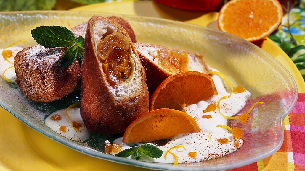 - Do tvarohu zašleháme smetanu, ochutíme vanilkovým cukrem a šťávou a kůrou z jednoho citronu. Takto připraveným krémem poléváme jednotlivé porce osmažených meruňkových rohlíků. Podáváme ozdobené lístkem čerstvé meduňky. (Tip: rohlíky můžeme plnit i jiným ovocem.)
