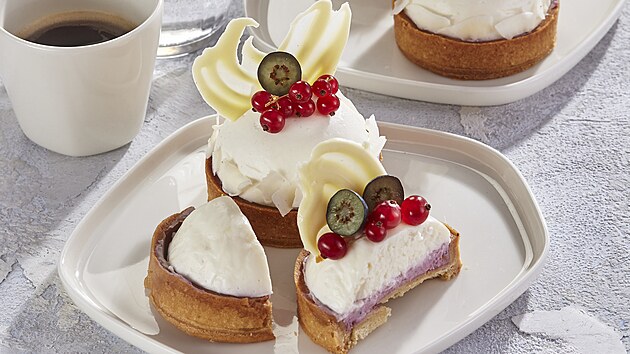 - Ze zmrazeného těsta vykrájíme kolečka o průměru cca 10 cm. Vyložíme jimi formičky (o průměru cca 8 cm) vymazané máslem. Pečeme ve vyhřáté troubě při 160 °C asi 15 minut. Necháme vychladnout.