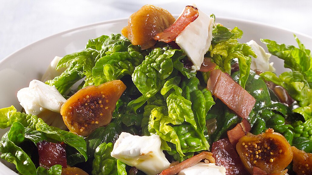 - Čestvý špenát propláchneme pod tekoucí vodou, necháme okapat, případně natrháme na menší kousky. Ty lehce promícháme v fíkovou zálivkou, posypeme kousky koziho syra a ihned podáváme.