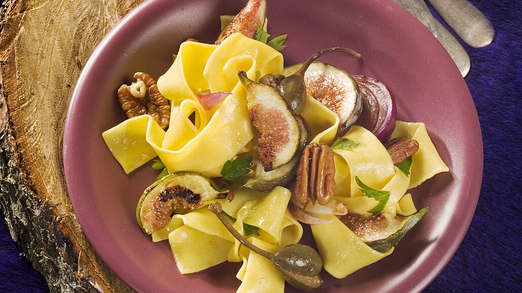 - Těstoviny naaranžujeme na talíř a na ně rozdělíme fíkovou směs.