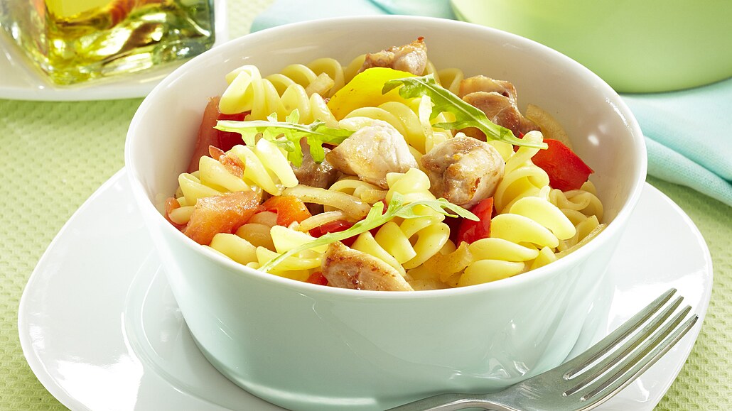 - Králičí maso očistíme a nakrájíme na kousky. Cibuli s česnek oloupeme. Cibuli nakrájíme na měsíčky, česnek na plátky. Papriky s rajčátky očistíme. Nakrájíme je na nudličky a rajčátka překrojíme napůl.