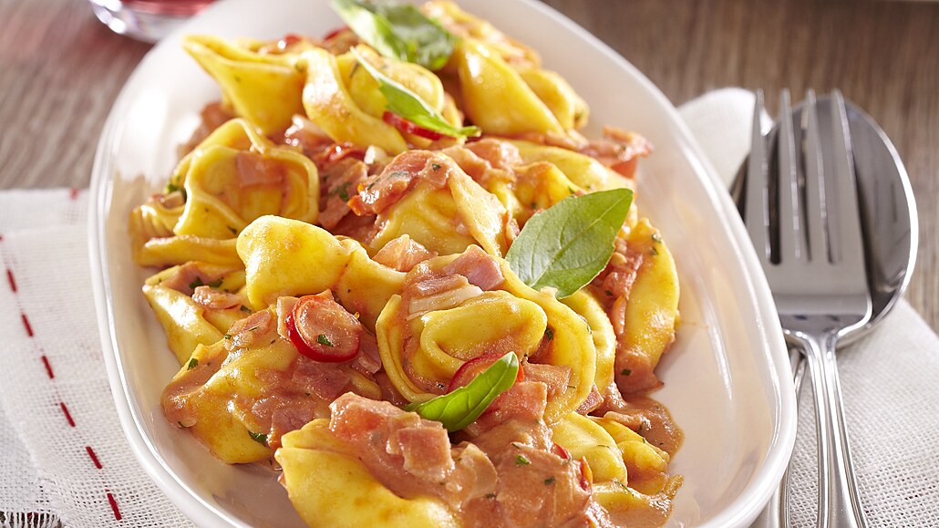 - Přidáme nakrájenou chilli papričku, sterilovaná rajčata a krátce povaříme. Do pánve k rajčatům vlijeme smetanu, nasekanou bazalku a ochutíme solí a pepřem. Nakonec do omáčky přidáme uvařené těstoviny, prohřejeme a podáváme.