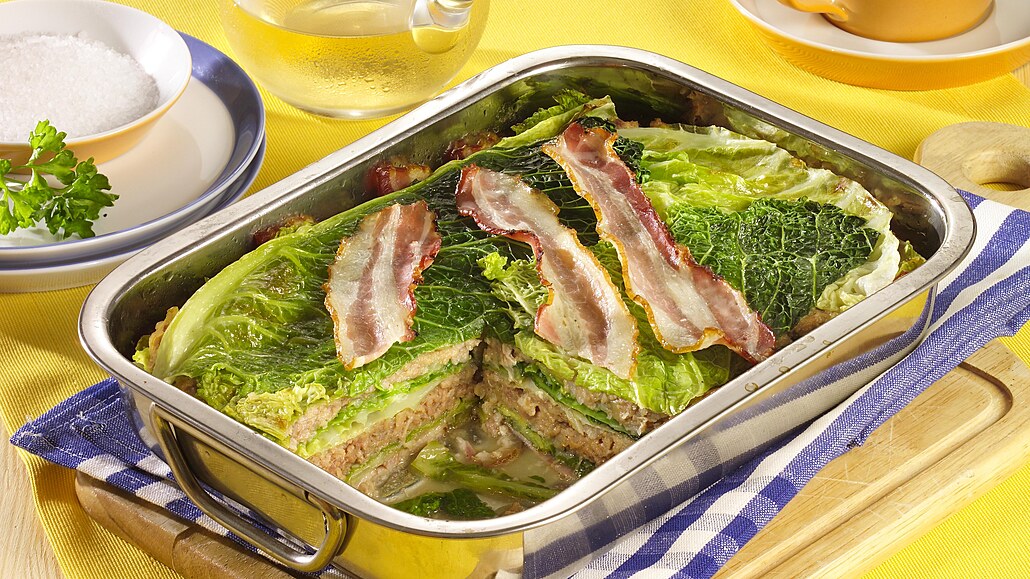 Klasický recept sází na poctivé vyložení pekáčku anglickou slaninou, která během pečení odevzdá své aroma střídajícím se vrstvám kapusty a kořeněného masa. Tato technika zaručuje pokrmu nevídanou šťavnatost a hloubku chutí, kterou podtrhuje drcený česnek a vejce. Tradiční hodovní jídlo, které v sobě nese esenci staročeské venkovské kuchyně.