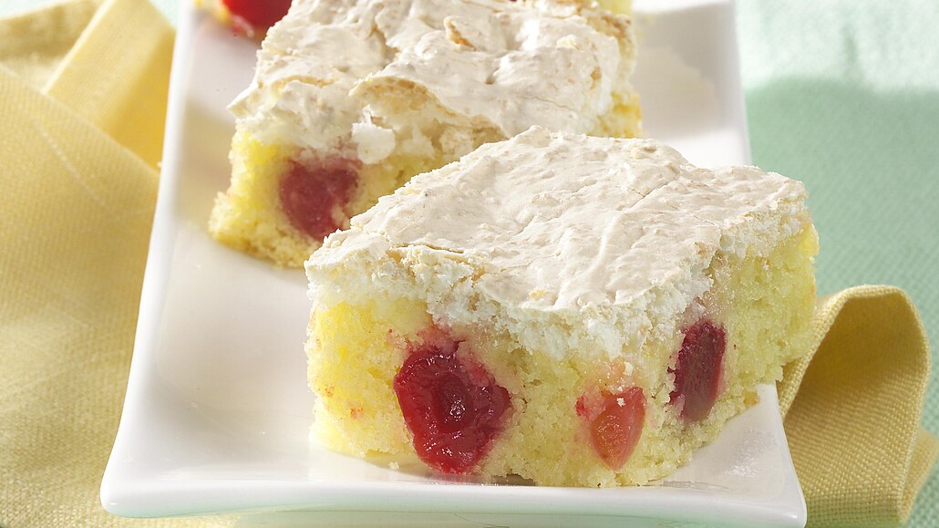 - Bezé: Bílky šleháme s krupicovým cukrem na horké vodní lázni do zhoustnutí. Pak je vyjmeme z vodní lázně a šleháme do vychladnutí. Nakonec do sněhu lehce vmícháme prosátý moučkový cukr a kokos. Předpečený koláč vyjmeme z trouby a ihned na něj bezé rozetřeme. Dopékáme ho při 160 °C asi 30 minut. Moučník necháme na plechu vychladnout a pak nakrájíme na porce.