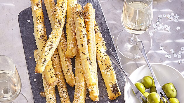 - Před podáváním můžeme některé tyčinky omotat sušenou šunkou a podávat spolu se zelenými olivami.