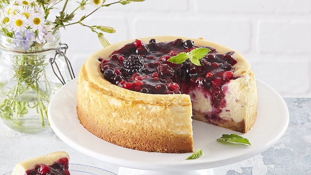 - Těsto nalijeme do formy, navrch dáme polovinu lesní směsi a pečeme v troubě vyhřáté na 140 °C asi 60 minut. Necháme vychladnout a poté dáme navrch druhou polovinu ovoce.