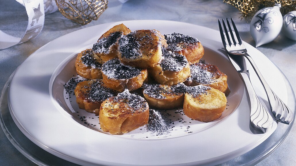 - Kolečka dáme do hrnce a polijeme postupně malými dávkami vanilkového mléka. Tekutina by měla kusy pečiva pokrýt. Opatrně jednou či dvakrát zamícháme, až se všechno mléko vsákne. Vše dozlatova opečeme na rozehřátém másle, přičemž hrncem stále pohybujeme. Před podáváním posypeme směsí máku a cukru. Můžeme podávat I s prohřátou meruňkovou zavařeninou.