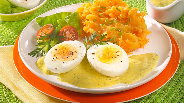 - Vejce uvaříme v osolené vodě natvrdo. Když vychladnou, oloupeme je a rozpůlíme.