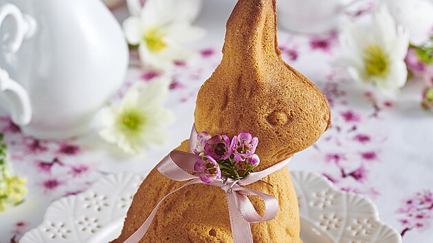 - Tukem vymazanou a moukou vysypanou formu naplníme připraveným těstem. Pečeme v předehřáté troubě při 175 °C asi 45 minut. Po upečení necháme krátce vychladnout ve formě a poté vyklopíme na kovovou mřížku a necháme vychladnout úplně. Před podáváním můžeme dozdobit třeba mašličkou a květinou.