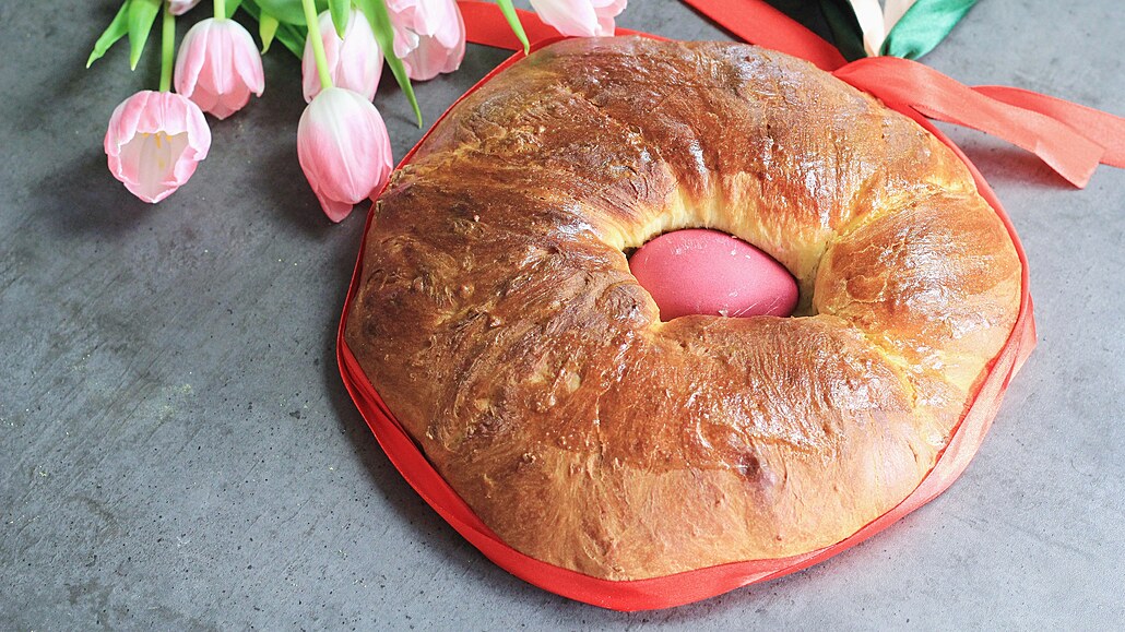 - Pečeme ve vyhřáté troubě 25 až 30 minut. Deset minut před koncem věnec potřeme rozšlehaným vejcem.