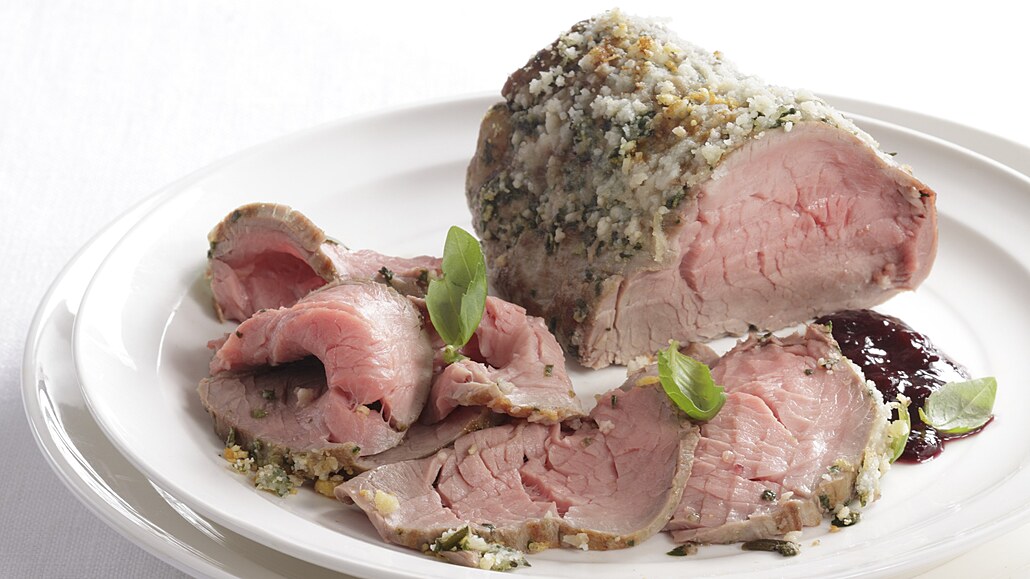 - Maso posypeme parmazánem, lehce ho přimáčkneme a dáme péct. Pečeme v troubě předehřáté na 160 °C asi 20 minut. Maso vyndáme a před porcováním necháme alespoň 10 minut na mírném teple odpočinout.