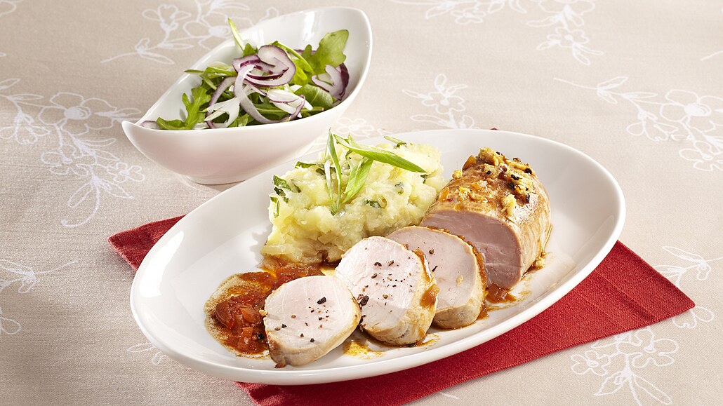 - Maso nakrájíme na plátky, rozdělíme na talíře a podlijeme omáčkou. Podáváme se šťouchanými brambory a zeleninovým salátem.