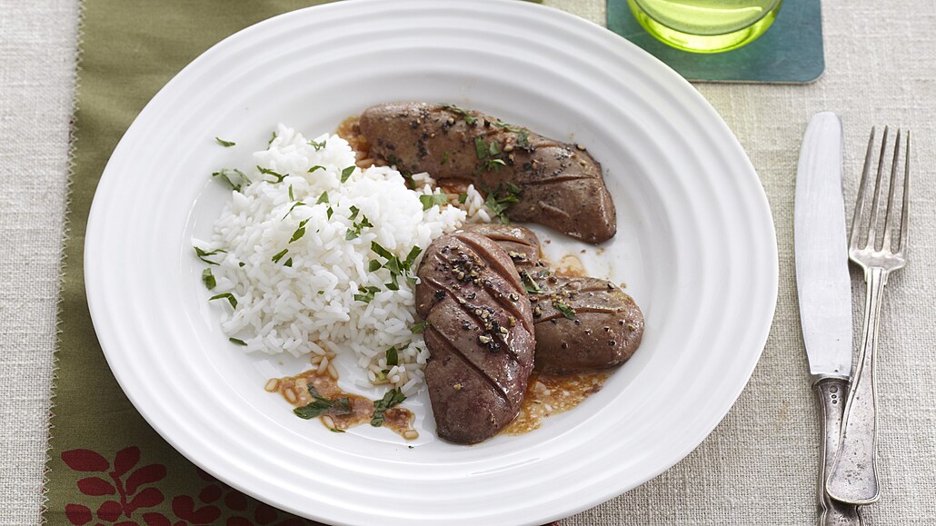 - Ledvinky rozdělíme na talíře. Šťávu z mísy přilijeme do výpeku, kterým přelijeme ledvinky na talířích. Podáváme s dušenou rýží.