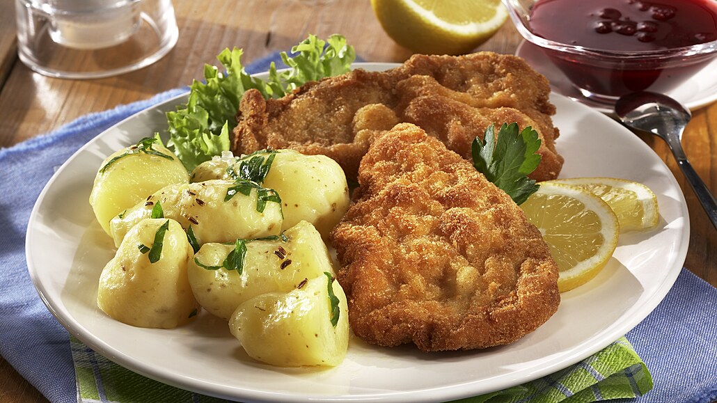 - Na pánvi rozehřejeme olej a obalené řízky na něm pozvolna smažíme z obou stran dozlatova. Pak je vyjmeme a položíme na papírový ubrousek, aby odsál přebytečný tuk. Citron omyjeme teplou vodou, osušíme a nakrájíme na tenké plátky. Listy salátu omyjeme a vytřepeme z nich vodu. Řízky rozdělíme na talíře, obložíme salátem a přelijeme trochou brusinek. Podáváme s plátkem citronu. Vhodnou přílohou jsou vařené brambory.