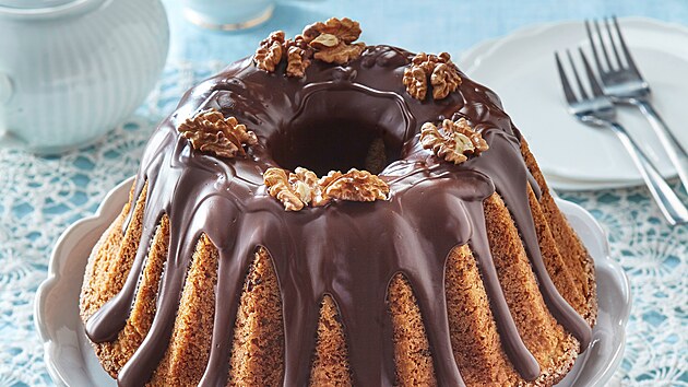 - Čokoládu rozpustíme nad horkou vodní lázní s máslem. Poté vmícháme rum. Zchladlou bábovku přelijeme polevou a posypeme vlašskými ořechy.