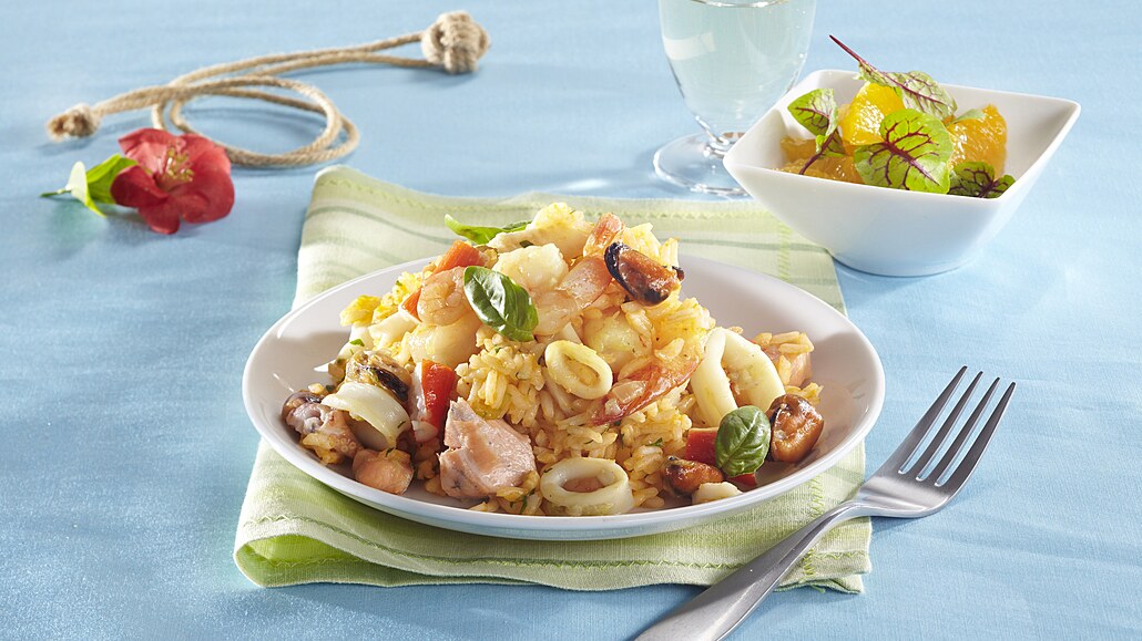 - Pak zamícháme mořské plody, zalijeme zbytkem vývaru a bílým vínem. Dusíme ještě asi 5 minut, až je rýže měkká, ale nerozvařená.