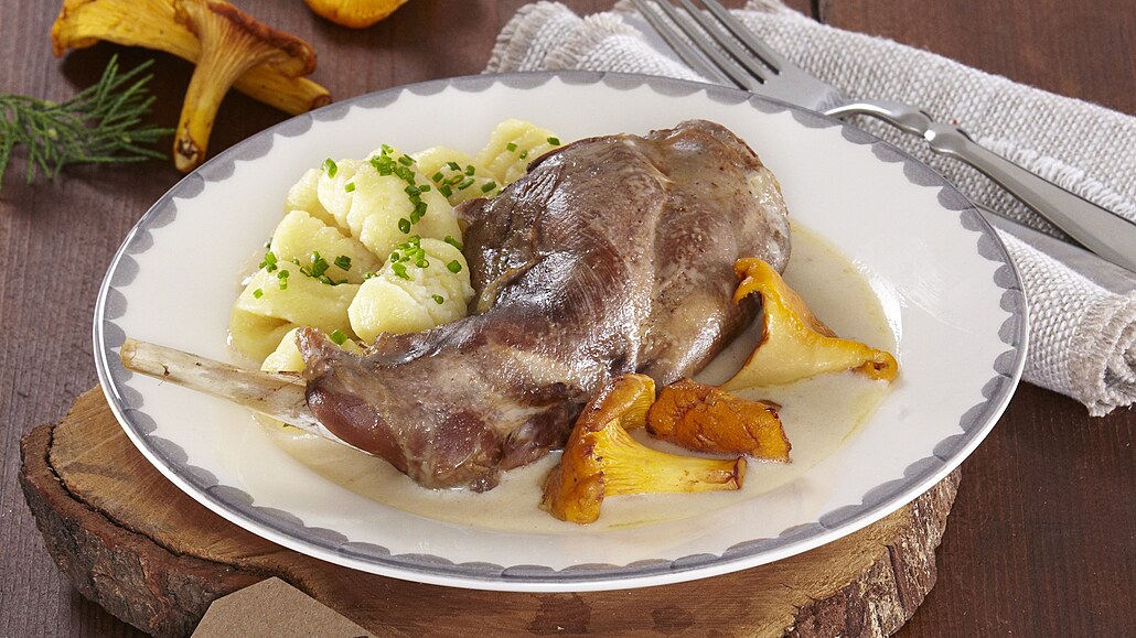 - Když je maso měkké, omáčku zahustíme jíškou připravenou ze zbylého másla a mouky. Provaříme a zalijeme smetanou. Dochutíme trochou octa, soli a pepře a krátce povaříme. Podáváme s bramborovými noky.