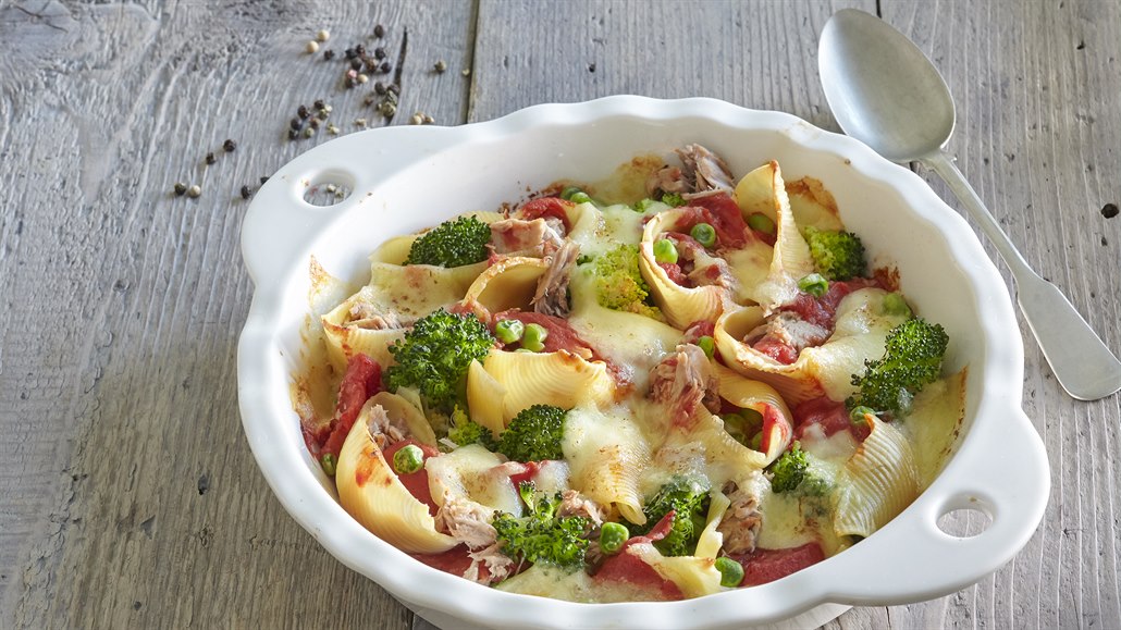 Zapečené těstoviny s tuňákem a brokolicí