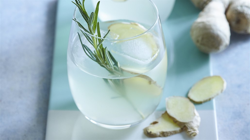 - Vychlazený zázvorový sirup smícháme s vymačkanou šťávou ze dvou citronů. Připravenou zázvorovou limonádu rozdělíme do čtyř sklenic s kostkami ledu. Sklenice nakonec dozdobíme několika plátky čerstvého zázvoru a snítkami rozmarýnu. Ihned podáváme.