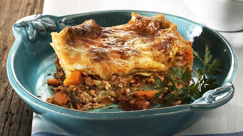 - Pečeme v troubě vyhřáté na 190 °C asi 40 minut. Hotové lasagne nakrájíme na porce, ozdobíme bylinkami a podáváme.